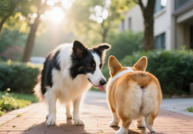 比如,当两只狗狗相遇时,它们可能会先对视一会儿,就像是在说:“嘿,你好呀!”然后,它们可能会互相嗅嗅,再摇摇尾巴,表示友好。如果其中一只狗狗尾巴耷拉着,甚至还呲牙,那可能就是表示:“嘿,你别靠近我,我可不好惹!”